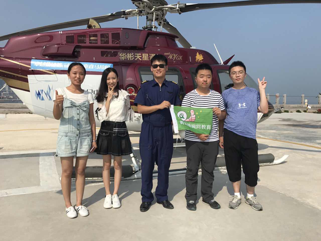 一場及時雨后迎來了清爽的青島,碧海、藍(lán)天與白云,在美麗的海岸線上,四名高考學(xué)霸乘坐Bell-407GX直升飛機,從100米的高空俯瞰青島本次活動是由青島新聞網(wǎng)教育頻道、青島云世紀(jì)航空聯(lián)合舉辦,今年特別邀請了三所高中的四名高考高分學(xué)霸,在第三海水浴場乘坐酷炫十足的直升飛機,換一個角度看青島。如今,學(xué)霸們已經(jīng)分別收到來自清華、北師大、天大、信息工程大學(xué)的錄取通知書,也即將離開青島開始各自求學(xué)之路,而這一次做直升機俯瞰故鄉(xiāng),讓他們對故鄉(xiāng)的思念多了一種記憶。